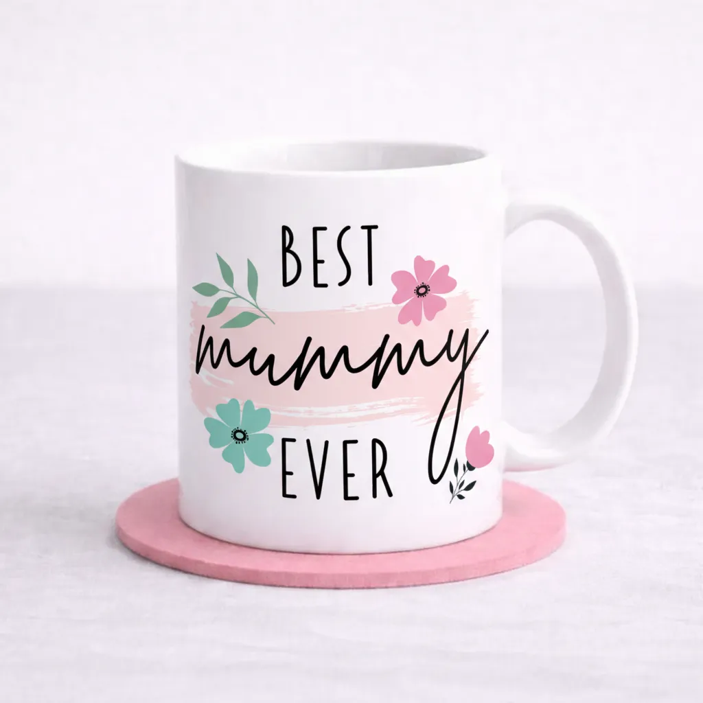 Make Mum smile with a gift that’s sweet, modern, and full of love. Our “Best Mummy Ever” mug features a soft blush brushstroke with pretty floral accents and stylish lettering—perfect for mums who love something cute, classy, and uplifting.