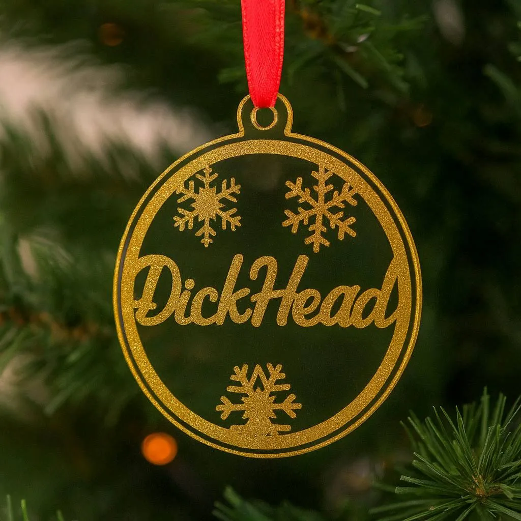 Bring a little attitude to your Christmas tree with this bold and humorous acrylic bauble. Hand-made using a clear acrylic base, this festive ornament features a sparkling gold design accented with snowflake details, making it stand out beautifully among your tree lights. Finished with a classic red ribbon, it’s ready to hang proudly and guaranteed to get a laugh from anyone who spots it.
