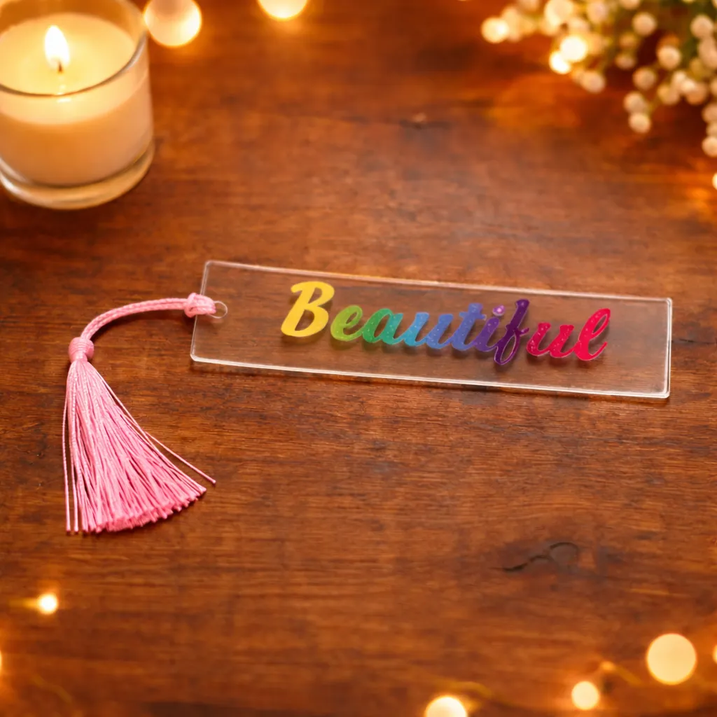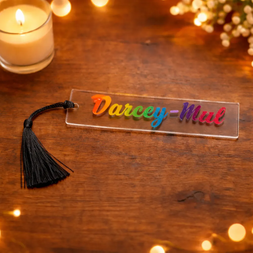Add a pop of colour to your reading! These acrylic bookmarks are personalised with your chosen name, word, or short phrase in stunning rainbow vinyl. Because of the vinyl pattern, no two bookmarks are ever the same – making yours completely unique to you.