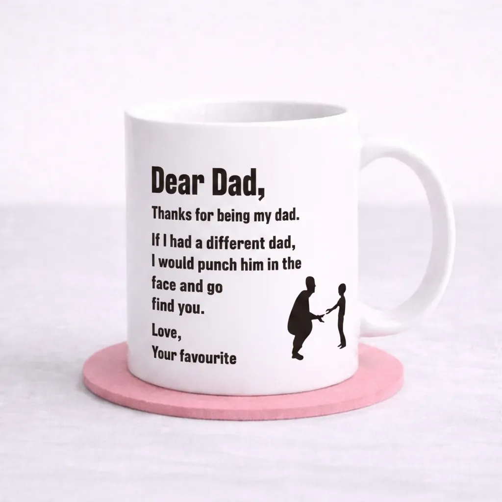 This “Dear Dad” mug delivers the perfect mix of heartfelt appreciation and cheeky humour that every dad will love.