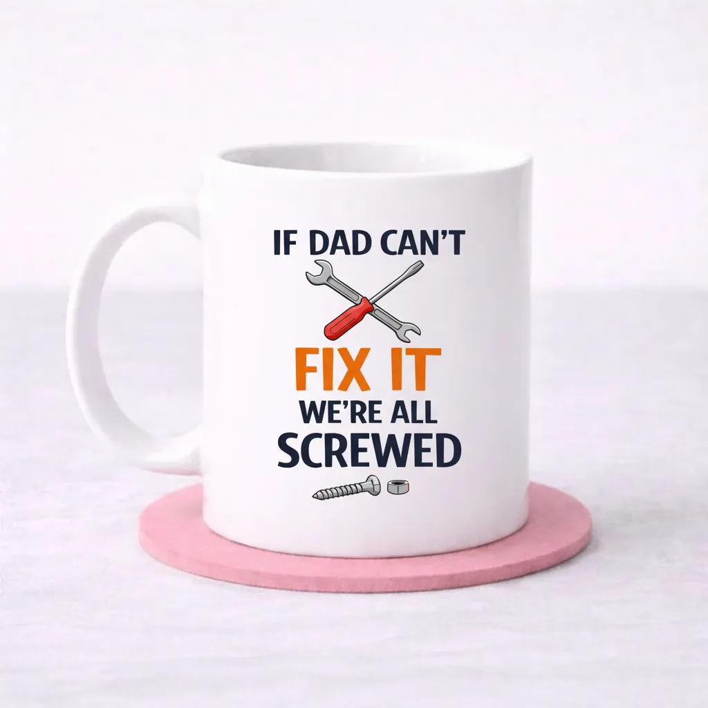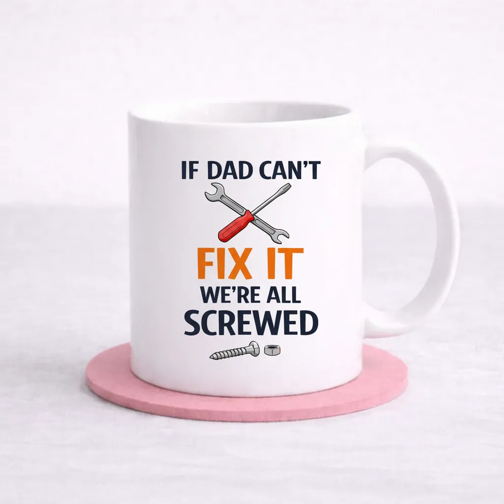And this “If Dad Can’t Fix It, We’re All Screwed” mug says it exactly how it is!