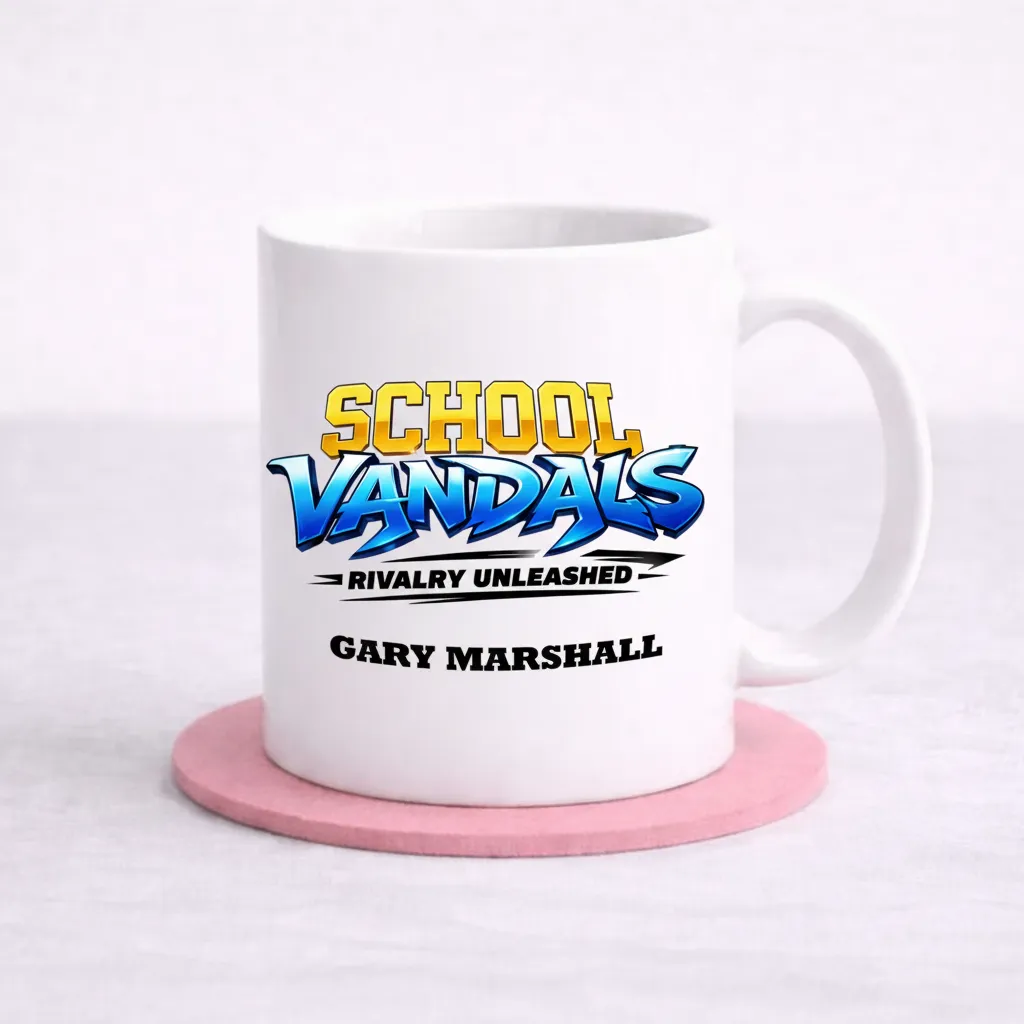 The perfect mug for the perfect game. School Vandals Rivalry Unleashed presents its own merch line with this customisable mug. Add your name or your school name or any text you like under the logo.